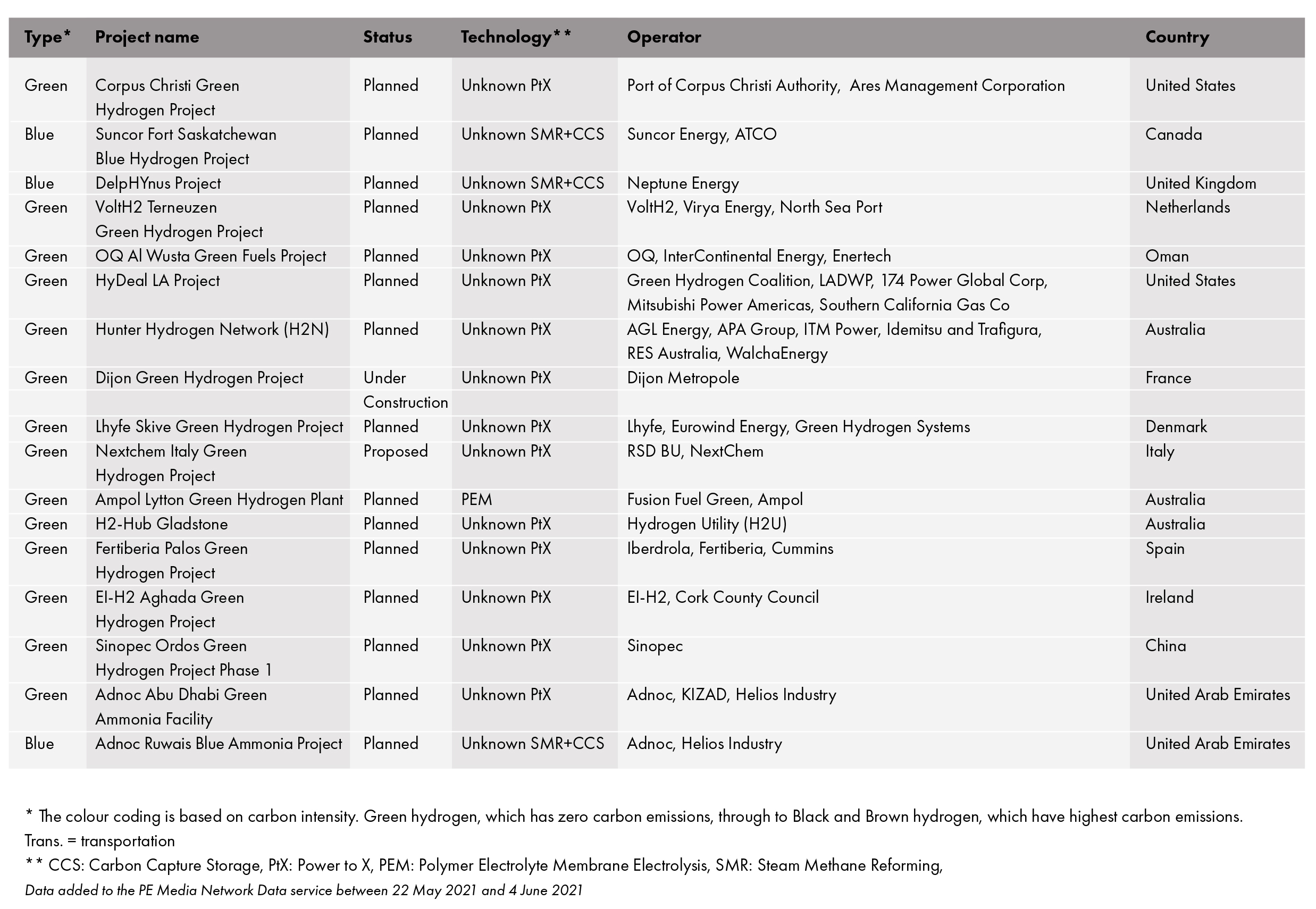 Seventeen new projects were added to our database in the last two weeks, across green and blue hydrogen.