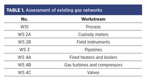 The assessment focused on the existing gas network—every gas network is unique in terms of the design limitation and type of end users silicification. As shown in FIG. 1, several workstreams were evaluated and summarized in TABLE 1.
