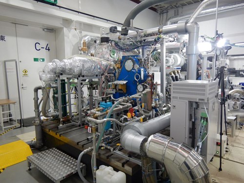 Hydrogen has a wide flammability range and a high combustion wave propagation velocity, making the engine prone to abnormal combustion such as backfire and knocking. The test used MHIET’s existing lean-burn gas GSR series engine with additional modifications in fuel supply method, ignition method, timing of intake air valve closing, and excess air ratio etc. for optimum combustion to determine the conditions that ensure stable combustion with hydrogen-only firing and premixed firing. Converting the test results, the maximum output is estimated to be 340kW for 6-cylinder engine and 920kW for 16-cylinder engine. MHIET intends to accumulate more test data that will lead to the realization of multi-cylinder hydrogen engines and aims to make the engines available for the introduction of hydrogen economy in the 2030s.