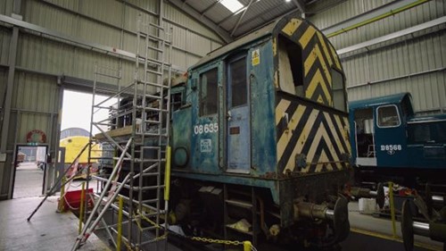 Work is already underway at the heritage railway’s diesel depot at Kidderminster, where a team of young volunteers are stripping down the donor vehicle. They’re removing the existing diesel engine and generators and overhauling other components, as they prepare Class 08 shunter No 08635 to receive its new power system.