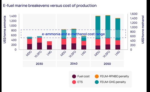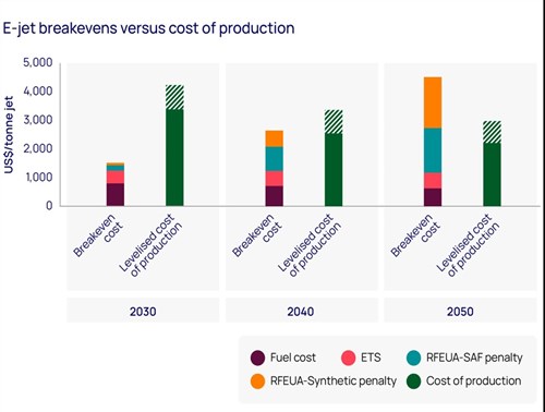 “There is no shortage of offtakers seeking low-carbon fuels, but the gap between cost of production and willingness to pay is sizeable,” Douglas says. “Each e-fuel has an incumbent fuel it aims to displace, all of which are much cheaper, and this means their success will be dictated by policy to mandate volumes, place a cost on emissions and lower production costs.”