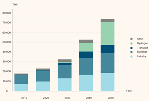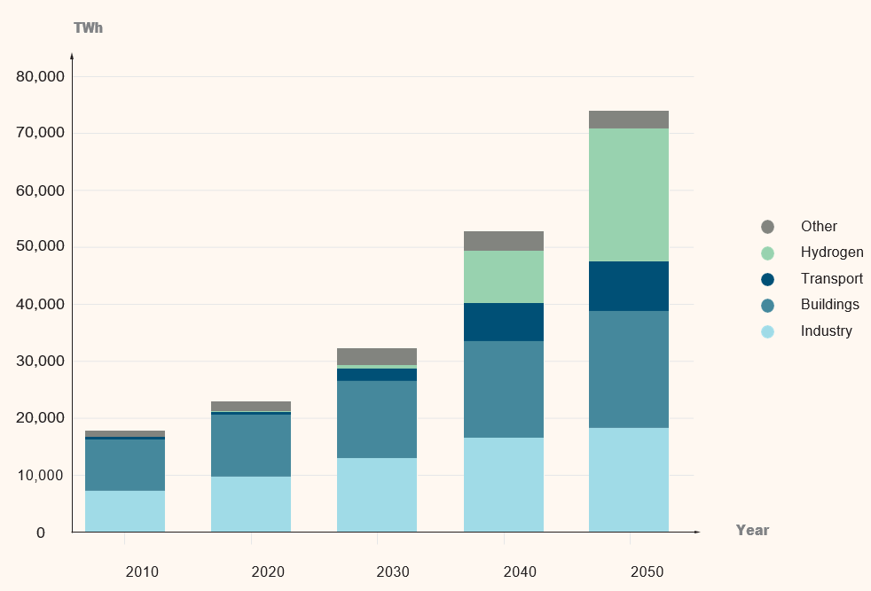 Case: Excess heat from H2 production. Over the coming years, the power demand for H2 production will be substantial and will only continue to increase, driven largely by electrolysis (FIG. 4).62 However, electrolysis wastes a lot of heat, and we can either let this disappear into the atmosphere, or leverage it to heat our homes, offices and hot water supply.