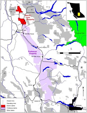 Inomin Mines Inc. reports it has applied for H2 rights at the Company’s Beaver-Lynx critical minerals project in south-central, British Columbia. The H2 application covers high priority targets based on recent drilling and geophysical modeling. Fortescue Ltd. has recently staked a vast area of mineral claims adjacent and along strike to Beaver-Lynx. In total, Fortescue has staked approximately 3,576 square kilometers of mineral claims over a strike length of 170 km, one of the largest acquisitions of mineral claims in British Columbia by an Australian company.