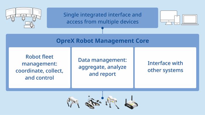 OpreX Robot Management Core is a key product in Yokogawa’s robot solutions. The software helps customers maintain their facilities in a safer and more efficient manner by integrating the management of various types of robots that perform plant maintenance tasks conventionally carried out by humans. When connected to a plant’s control and safety systems, the data acquired can be used to issue instructions to robots, thus enabling the first step to be taken toward autonomous plant operations. The addition of Shell’s ORE technology will significantly increase the number of use cases available to customers through OpreX Robot Management Core.