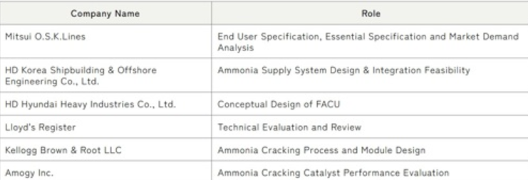 MOL, HD KSOE and HHI have finalized the conceptual design, including the process layout and general arrangement of FACU. In support of this achievement, Kellogg Brown & Root LLC (KBR) collaborated on the ammonia cracking process and module design, enabling a single-train capacity of 1,000 tpd H2 supply based on H2ACT® technology, and Amogy Inc. (AMOGY) has provided a new catalyst solution.