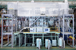 Within this project, J‑ENG has been developing a fully Japan-made, large, low‑speed, two‑stroke hydrogen-fueled engine. The world’s first full‑scale engine intended for installation on an actual vessel, 6UEC35LSGH, has successfully begun hydrogen co‑firing operation in all cylinders. To date, the engine has achieved a hydrogen co‑firing ratio of over 95% at 100% load, confirming both GHG reduction effects and stable operation. Verification testing will continue to further optimize performance under hydrogen co‑firing conditions.