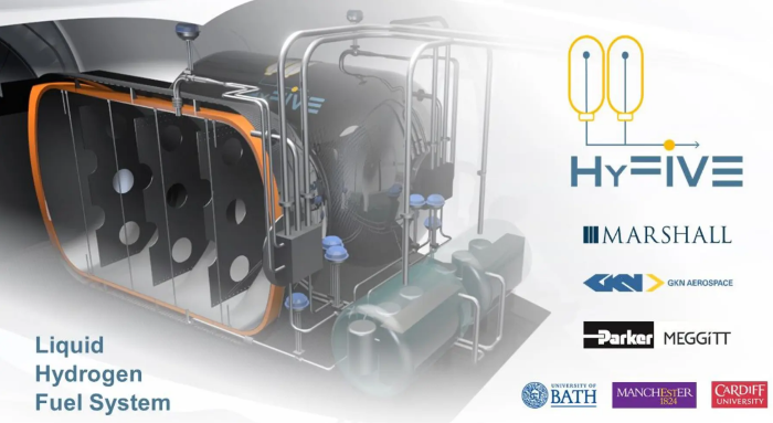 GKN Aerospace partners with Marshall, Parker Meggitt, University of Manchester, University of Bath, and Cardiff University in the HyFIVE consortium to establish robust cryogenic H2 systems supply chain for future aircraft.