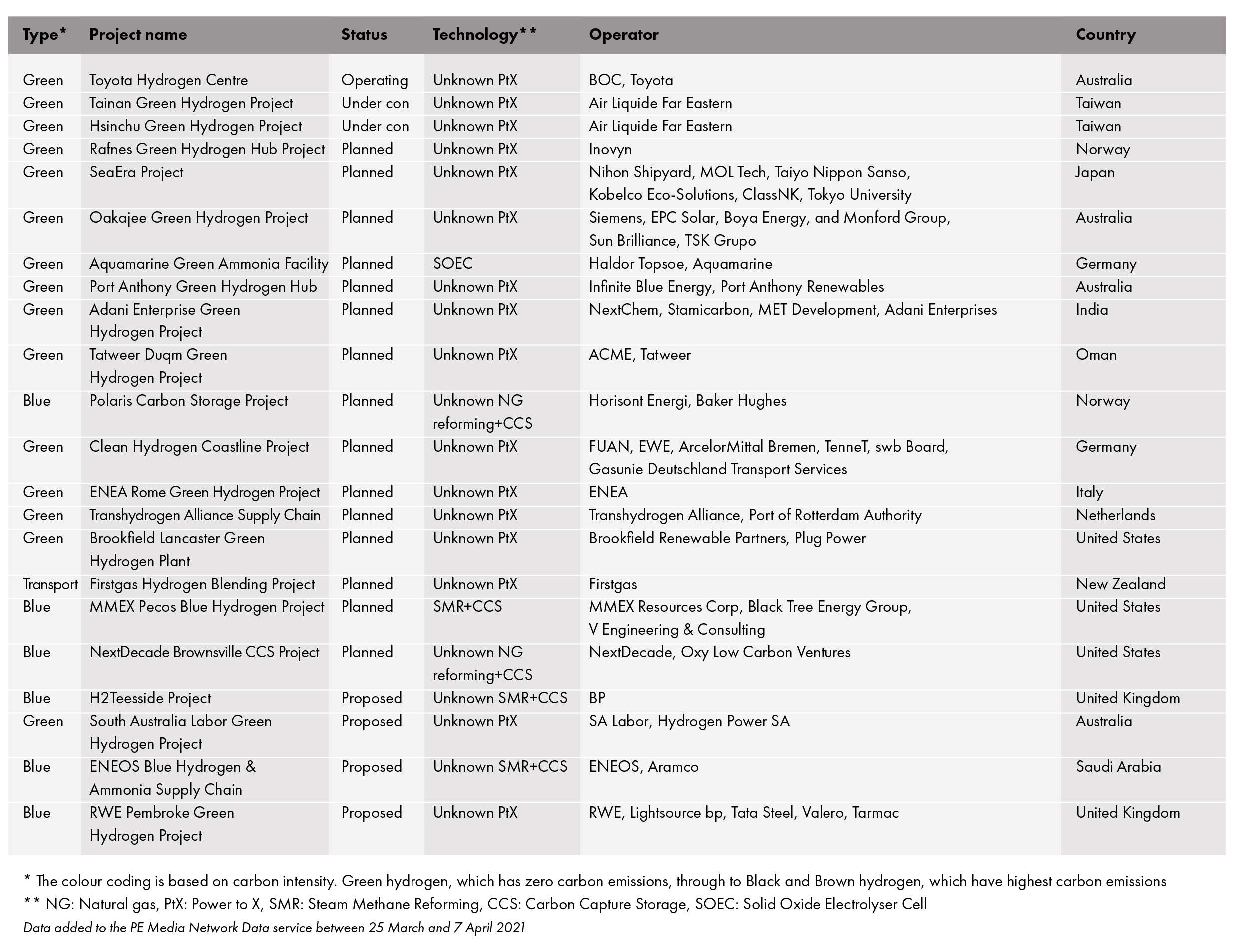 In the UK, BP announced that it is developing plans for the country’s largest blue hydrogen production facility, targeting 1GW of hydrogen production by 2030. The proposed development, H2Teesside, would capture and store up to 2mn t/yr of CO₂ and support the development of the region as the UK’s first hydrogen transport hub. The project is expected to take FID in early 2024 and could begin production in 2027 or earlier, with an initial phase of 500MW. A feasibility study is underway to explore technologies that could capture 98% of carbon emissions from the hydrogen production process. The project could support the conversion of surrounding industries to use hydrogen instead of natural gas, thus decarbonising a cluster of industries in Teesside.