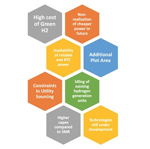 The introduction of green H2 in Indian refineries poses several challenges (discussed in detail below and shown in (FIG. 1), including: