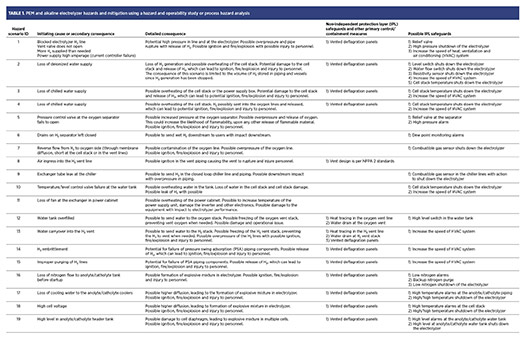 The author’s company has reviewed the hazards of various electrolyzers at many production facilities—from small-scale test facilities to large-scale production facilities—and has helped manage the associated risks to tolerable levels. This enabled the identification of key commonalities and differences among various electrolyzer technology systems to better support efforts to standardize protection/mitigation systems. It will also allow for optimal risk reduction without the business risk of additional costs related to future implementation of mitigation.