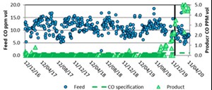 These materials are loaded in fixed-bed reactors and ensure that virtually no impurity breaks through the bed throughout the entire lifetime of the adsorbent. Outlet impurity levels can be observed as low as a few parts per billion (ppb). Guard bed vendors ensure that the bed design allows maximum pick-up capacity and consider mass transfer diffusion and intrinsic kinetics so that the whole volume of the adsorbent is used to maximize the bed’s lifetime and time between bed change-outs.
