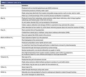 Primarily, the industry still uses gray H2. Gray H2 is produced by the steam methane reforming (SMR) of natural gas (TABLE 1). From this process, CO2 is produced and eventually released into the atmosphere. SMR is common globally in the refining sector, with heavy demands for H2. H2 generation with carbon sequestration will be used, as it is a commercially viable technology.