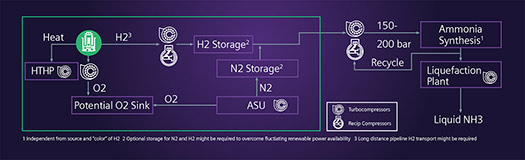 Chemically combining green H2 with other constituents to create liquid eFuels, such as eAmmonia (NH3) and eMethanol, are essential to solving the transport puzzle and extending the reach of renewable energy sources. Along with pipelines, eFuels are the most efficient method for bulk storage and H2 transportation, particularly over long distances. This article discusses the potential of NH3 as a clean energy carrier and the critical role compressors play in its production (FIG. 1).