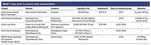 According to the International Energy Agency (IEA), green H2 capacity through water electrolysis doubled in 2020 compared to the previous year, taking low-carbon H2 production to 300 kilotons.5 A similar increase was achieved in blue H2 production via SMR and CCS. The current pace of the green H2 market expansion is much lower than what is required for meeting net-zero goals by 2050. In 2023, the majority of investments for green H2 production was from the oil and gas, refining and chemicals (fertilizer, methanol and petrochemicals) industries. Sectors like steel and cement have not caught up with the new paradigm. While all technologies available to produce green H2 are getting optimized through research and innovation, it is expected that by 2025 major sectors should witness an accelerated shift toward green H2 (TABLE 1).