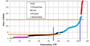 Unfortunately, these situations can still create balancing problems. In the extremes, this causes negative spot prices, where the system's operator must pay agents to remove electricity from the grid. Additionally, real-world generation stacks are highly nonlinear. For example, FIG. 5 presents the generation stack for Pennsylvania in 2008.