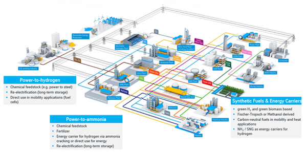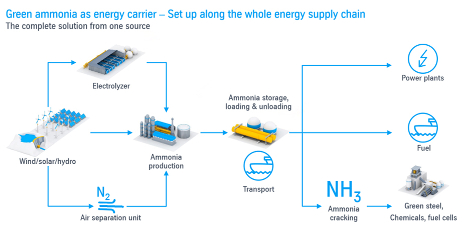 Another important element is the optimization of the grand picture, from power generation to final utilization of the product. Industry must find the optimum between the intermittency of power supply from renewable sources—wind, solar and hydropower have very different supply patterns—in conjunction with H2 manufacturing, ammonia or methanol production, and long-distance transportation and further reconversion. An optimized solution will reduce capital and operational expenditures of the entire value chain and is therefore key to accelerate the acceptance of new energy supply mechanisms globally.