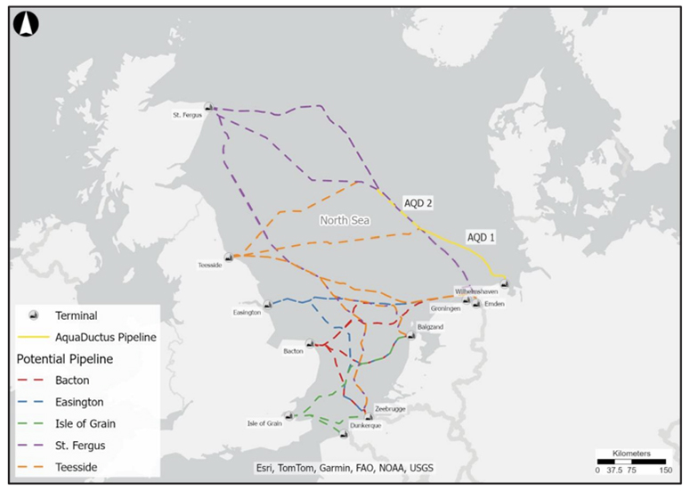 A recent feasibility study published by London-based Arup Group found that pipeline route options from the UK to AquaDuctus are technically feasible “at a high level.” It would, however, require further assessment and more certainty on how the two countries’ domestic networks will materialize in the next decade.