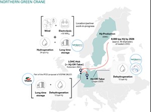 Green Crane stands as a beacon for ramping-up a pan-European H2 transport infrastructure, to be enabled by the liquid organic H2 carrier (LOHC) technology. By establishing green H2 production in Sweden, the project is renamed to Northern Green Crane. The access to the source in Sweden significantly improves the former Green Crane project, and all landing points remain as planned by Hydrogenious LOHC Technologies with its industry partners Royal Vopak and the Get H2 initiative in Germany.