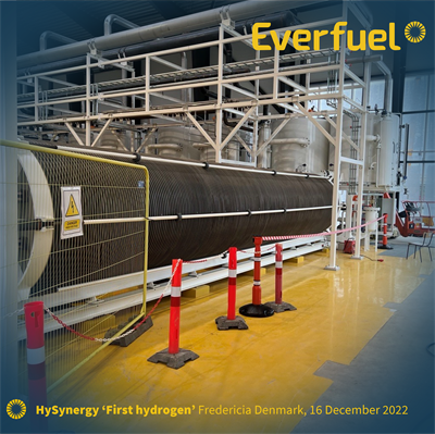 Everfuel A/S announced the production of first H2 at HySynergy. The initial volumes produced at Europe’s largest electrolyzer, represent a major milestone towards the commercialization of green H2 as a clean source of energy for industry and mobility.
