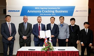 Analysis from the Korea Institute of Machinery & Materials shows that using ammonia cracking technology to enable H2-fueled turbines could reduce carbon emissions by 10.4% when a gas turbine is fired up with 30% H2. It can be lowered to 21.4% when there is 50% H2 present. According to data from IHS, H2 demand in 2030 for power and heat generation is set to be 2.1 MMt–4.6 MMt globally.
