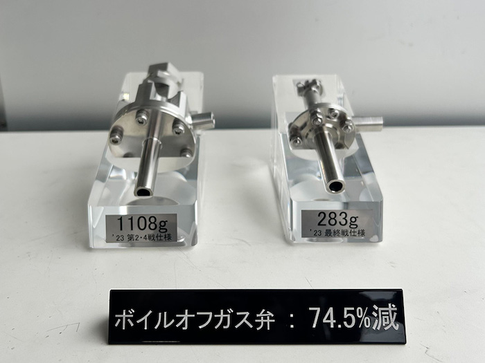 Vehicle weight. The H2-powered Corolla is equipped with many features that prioritize safety and security first and foremost. We identified parts that could be made lighter using the knowledge we have gained from our driving experience while keeping this emphasis on safety and security and reduced their weight by adjusting factors such as thickness and number of parts. As a result, we were able to reduce the weight of the tank, safety and boil-off gas valves, roll cage, high-pressure H2 system parts, and other components to achieve a vehicle weight of 1,860 kg, 50 kg lighter than the 1,910 kg it weighed at the Autopolis race.