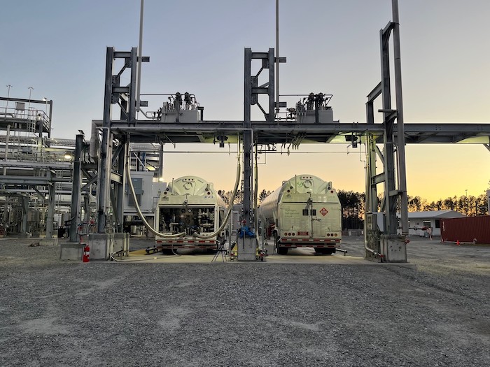 Plug Power has completed the first fill of a Plug tanker with liquid green H2 produced at its Woodbine, Georgia production plant, heading straight off to customer sites. The achievement comes one week following the official commencement of operations at the plant. A Plug cryogenic trailer has been filled with liquid H2 for use at Walmart, Amazon and Home Depot sites. This is enough liquid H2 to fuel 3,216 forklifts a day.