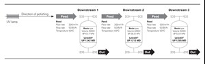 Ion exchangers continuously purify the water circuits. To stabilize the water cycle quality, a partial flow of around three to six percent of the total water volume is continuously purified in a polisher unit. LANXESS recommends an upstream UV lamp to oxidize the organic matter (TOC) followed by a combination of anion and cation exchange resins and a final polisher filter.