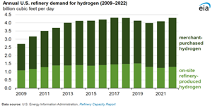 Refineries also use H2 coming off their own catalytic reformers; however, we do not collect these data because H2 input from refinery reformer units is counted indirectly as crude oil and unfinished oil inputs. We only collect data on H2 produced by SMR units.