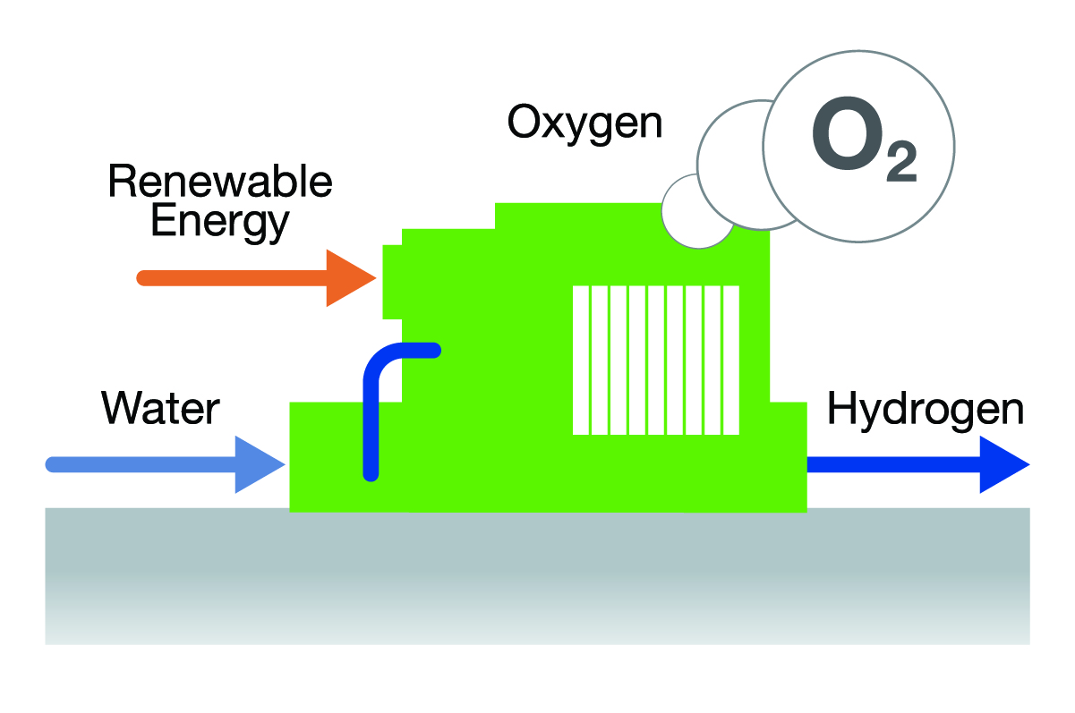 Green H2. To produce green H2, electrolysis is used to split water molecules into their component H2 and oxygen atoms. To qualify as green H2, the electricity employed must be from renewable sources like solar, wind, hydro or geothermal. In those situations, green H2 produces no CO2 emissions. As renewable energy prices continue to fall, it will become more attractive to pursue the production of green H2 vs. other forms of H2 (FIG. 3).