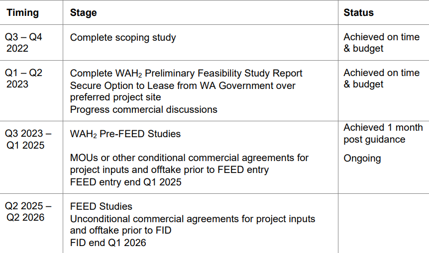 The completed technical work, preliminary commercial agreements and pre-FEED financial modelling are the basis for the next stage of strategic and customer discussions. These discussions will be supported by a WAH2 project data room in February.