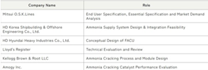MOL, HD KSOE and HHI have finalized the conceptual design, including the process layout and general arrangement of FACU. In support of this achievement, Kellogg Brown & Root LLC (KBR) collaborated on the ammonia cracking process and module design, enabling a single-train capacity of 1,000 tpd H2 supply based on H2ACT® technology, and Amogy Inc. (AMOGY) has provided a new catalyst solution.
